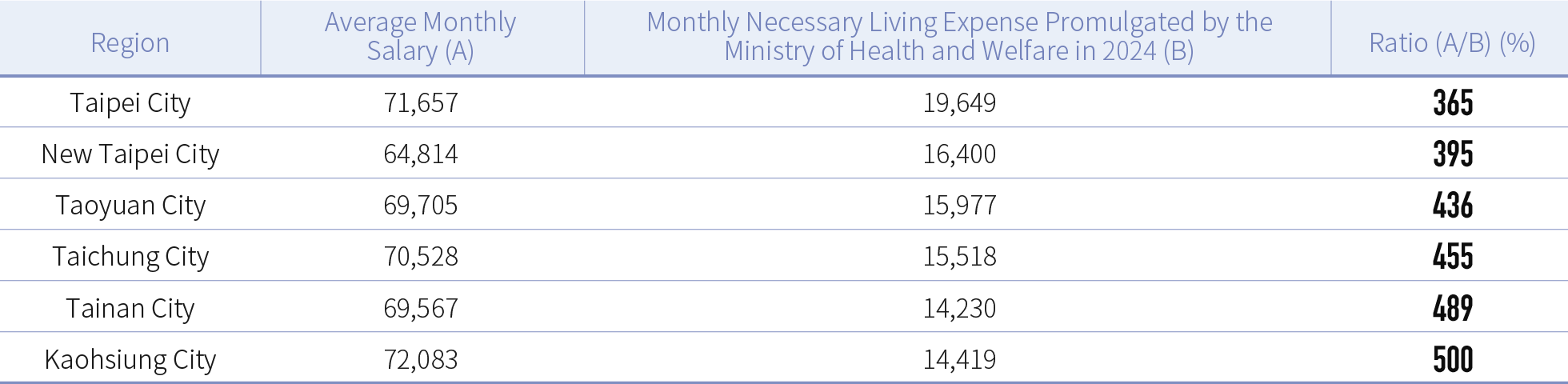 ◎ Chart for Comparing Salaries at FFHC's Domestic Business Locations (Six Major Metropolises) and Living WagesUnit: NT$/dollar