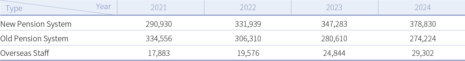 The Company has raised the starting pay for new hires on multiple occasions in recent years. The 6.5% pay raise is higher than half of our industrial peers. The ratio between our starting pay for entry-level employees and the nation's minimum wage is 1.5:1. We strive to establish a differential bonus system through a transparent and fair mechanism for promotions and performance assessments. The retention rate of new hires was 86.61% in 2024. Pensions are disbursed to retirees in accordance with the "Employee Pension Rules". In 2024, approximately NT$682 million was contributed to the retirement pension.