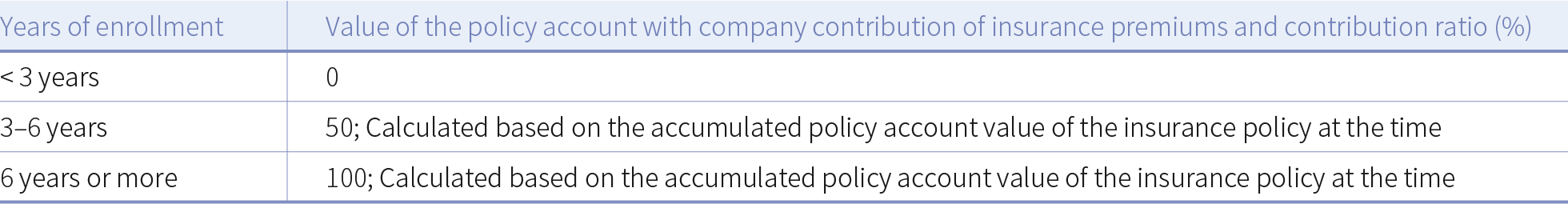 FFHC retains talent through forward-looking benefit packages, and encourages our employees to make long-term savings plans and plan for retirement. Since 2019, First Commercial Bank has been providing the "Establish Employee Savings and Stock Ownership Trust", offering full-time employees who have worked for the Company for more than half a year the choice of participating in this savings or stock ownership trust program. After that, various companies within the Group have conducted their employee stock ownership trust programs across the board since 2024, in which the companies subsidize and contribute a fixed amount of funds to invest in and hold FFHC stocks for long-term ownership in order to enhance cohesion. The participation rate was 94.98% till the end of 2024. Employee return ratios from the investment balance of the mandatory pension contribution account are formulated in accordance with the duration of their participation: