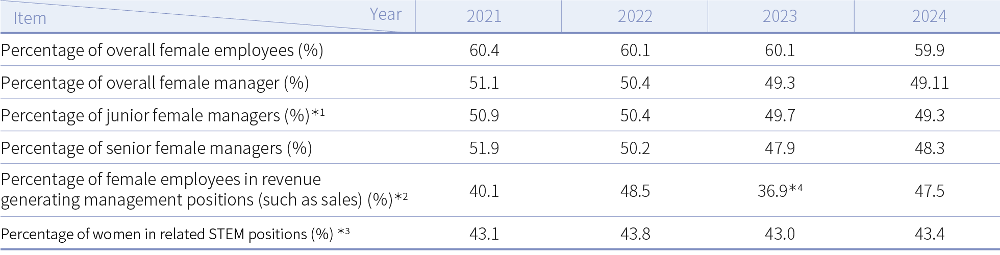 *3:STEM refers to science, technology, engineering, and mathematics. We recruit STEM-related employees based on their professional skills and do not set gender-based thresholds for recruitment.