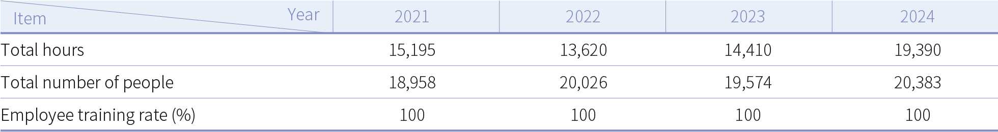 In 2024, a total of 19,390 employees at domestic and international operating locations participated in human rights protection training courses, with a total of 20,383 training hours, achieving a 100% participation rate. Additionally, the Company's human rights policies were communicated to partner security companies, ensuring that security personnel understood these policies through pre-service and in-service training. In 2024, 12 human rights education training sessions for security personnel were conducted, each averaging 0.5 hours, with a 100% completion rate.