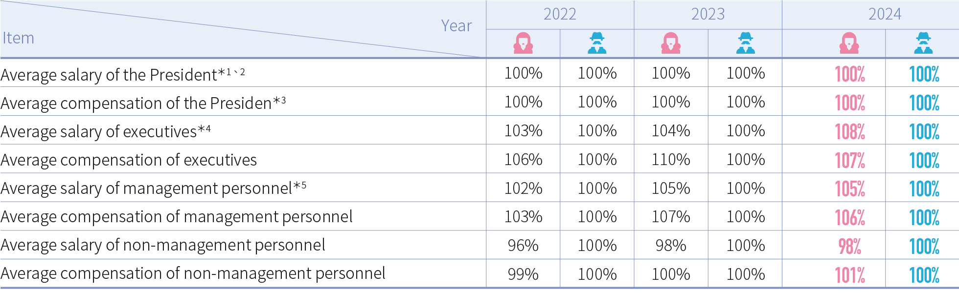 *1:The salary and remuneration of the President are proposed by the Remuneration Committee and submitted to the Board of Directors for review. There is no gender-based variation.