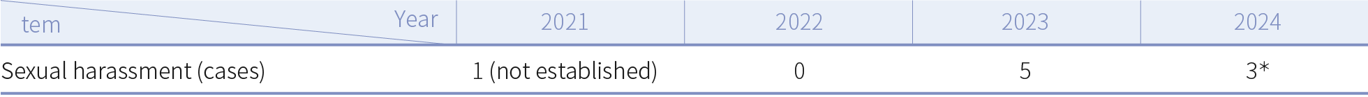 A "Sexual Harassment Complaints Committee" with 10 committee members and a majority of female members have also been established. The committee members serve for 2 years and their terms may be extended. The members of the committee must possess actual experience with handling sexual harassment, as well as a background in law, social sciences and human resources. A confidential investigation must be launched within 7 days of a complaint being received. The result of the investigation must be presented to the related party, and a report submitted to the committee for review. The case must be finalized within 2 months. Based on the committee's decision, appropriate disciplinary actions are given to the perpetrator, including reassignment from their original position and administrative penalties. The victim's wishes are respected, and appropriate job arrangements are made for them. Additionally, psychological counseling services from the Teacher Chang Foundation are provided. A lawyer will be hired to provide assistance in cases involving civil compensation. To protect the privacy and personal rights of the parties involved, all identifying information such as names or other data sufficient to identify individuals must remain confidential unless necessary for the investigation or due to public safety considerations. Relevant personnel and committee members are required to maintain confidentiality. Before each meeting of the Sexual Harassment Committee, the chairperson reads the confidentiality clauses aloud. In 2024, 3 cases of sexual harassment complaints were received by the Group, which were adequately processed and concluded.