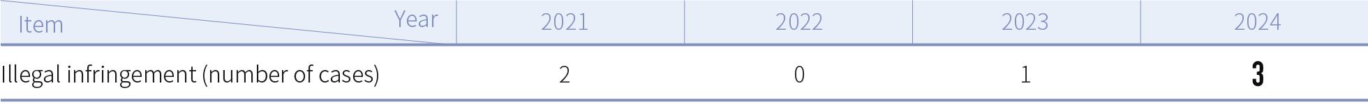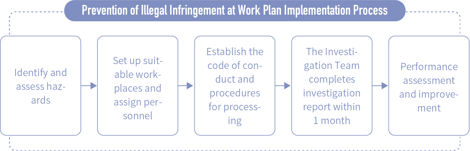 Our senior management have all signed the "Written Declaration for the Prevention of Illegal Infringement at Work". Courses relating to the prevention of illegal infringement at work have been incorporated into employee educational training. We seek to reduce the incidence of illegal infringement at work both internally and externally through providing a safe workplace, information on pressure alleviation and complementary psychological counseling, as well as through appropriate manpower allocations. Moreover, an "Illegal Infringement Complaint Investigation Team" has been established by representatives of the employer and employees to conduct investigations into related grievances.