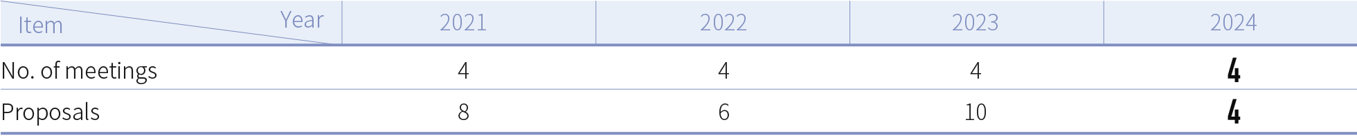 ◎ Statistics on Occupational Safety and Health Committee meetings in the past years