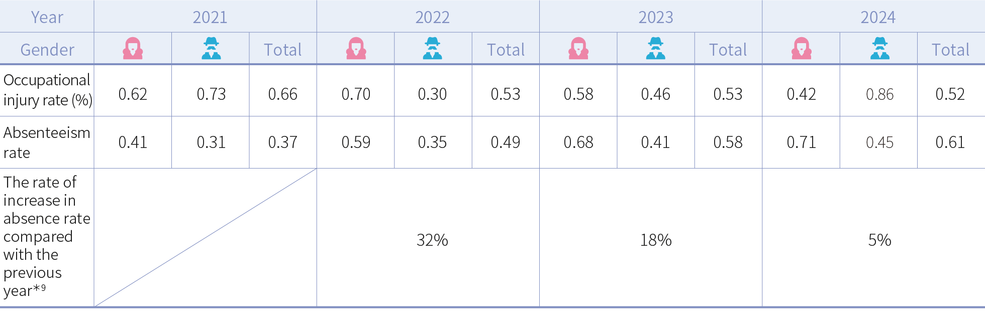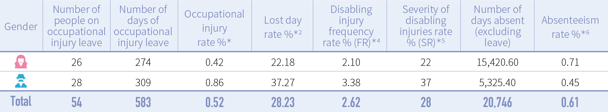 *1:Occupational injury rate: Number of people on occupational injury leave