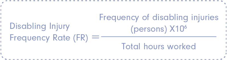*4:Disabling Injury Frequency Rate (FR): Based on the total number of disabling injuries during the period in question. Disabling Injury Frequency Rate is calculated as the total number of disabling injuries for every million work hours (to two decimal places). The formula is as follows: