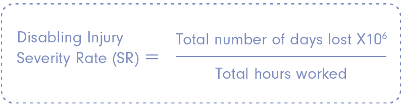 *5:Disabling Injury Severity Rate (SR): Based on the total number of days lost due to disabling injuries during the period in question. Disabling Injury Severity Rate is calculated as on the total number of days lost due to disabling injury for every million work hours (to nearest integer). The formula is as follows: