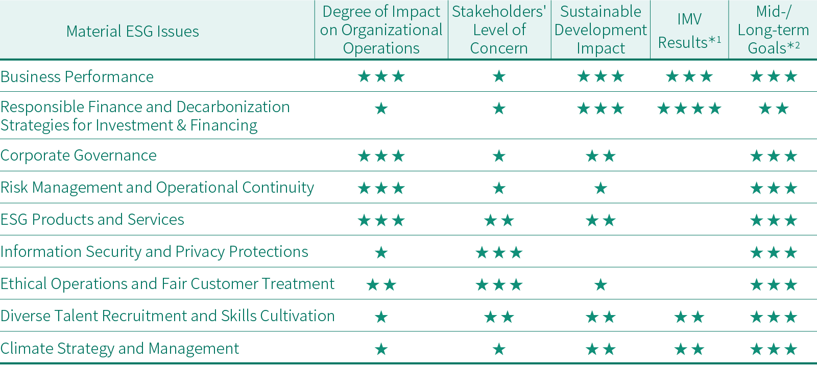 *2:「★」sets qualitative targets;「★★」sets one quantitative target;「★★★」sets two quantitative targets.