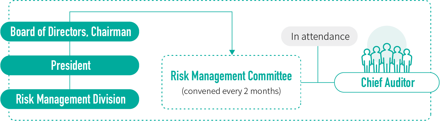 ・We strive to establish a risk reporting mechanism for internal staff through related regulations, such as the Rules for the Regulatory Compliance System, FFHC's Guidelines for Reporting Regulatory Compliance Cases, Implementation Rules for the Internal Audit System, FFHC Incident Reporting Guidelines, Operational Risk Management Guidelines, and Credit Risk Management Guidelines.