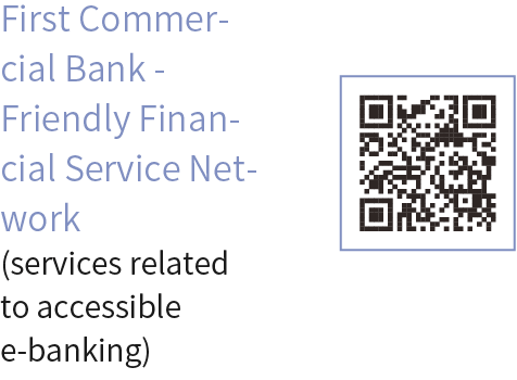 ・First Commercial Bank's simplified eATM, simplified e-Banking and Friendly Financial Service Network have obtained A, AA and AAA emblems respectively from the National Communications Commission based on the "Web Content Accessibility Guidelines 2.0", as we strive to provide premium and barrier-free Internet services.