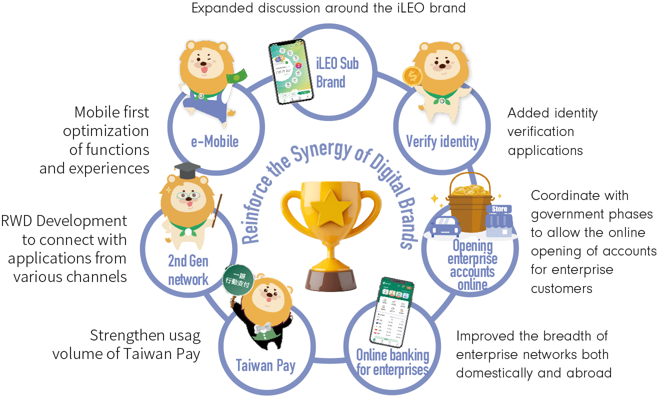 First Financial Holding has been dedicated to the digital native market through a variety of channels, especially the core values of "simple, fast, innovative, and most knowledgeable of customers" promoted by the digital account sub brand iLEO. Since launch, iLEO has generated more than 1.91 million users, and recorded an increase of 22.6% in new accounts in 2024, making it the 4th largest digital account on the domestic market. The iLEO app was downloaded 1.49 million times for a YOY growth rate of 35.5%. In order to continue to heed our customers' voice, First Commercial Bank introduced Net Promoter Score - a real-time questionnaire mechanism - to the iLEO app in September 2022. The Bank also tries to stay on top of customers' needs instantaneously, and continues to strive for swift iterative optimization of each product and service through various feedback channels, such as face-to-face interviews with users and comments left at the app store.