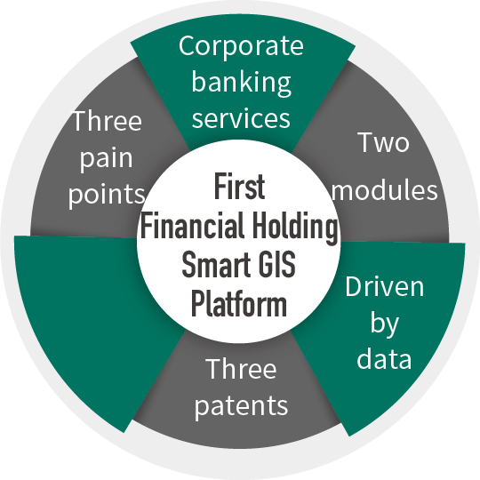 To continue to promote digital development, First Commercial Bank has introduced and applied the Geographic Information System (GIS) technology to the corporate loans domain. The Bank has launched "intelligent GIS work assignment" and "customer intelligence collection and management platform", two modules that link patented big data analysis model to internal and external data. A new corporate banking account model has also been developed, which visually presents customers' locations and business intelligence on mobile devices. Combining the 3 patents on the ability to calculate the best visiting route, marketing resource deployment and assistance in reaching out to enterprises and developing new customers, they not only address the three pain points of existing business process, i.e., lacking real-time lists, lacking dispatch tools and lacking information integration, but also increase front-line salespersons' ability in and success rate of developing and exploring surrounding corporate customers independently.