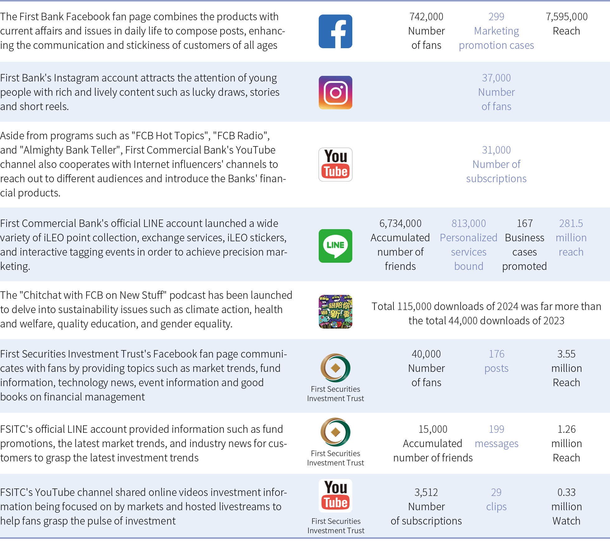 First Securities and First Commercial Bank collaborated to allow new customers to simultaneously open securities and digital banking accounts online while also completing setup of the securities delivery account. In 2024, a total of 735 accounts were opened.