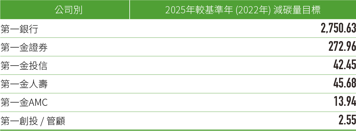 ◎ 第一金控2025年集團各公司減碳目標如下: