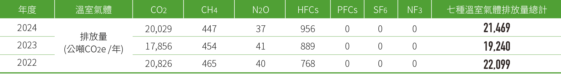 ◎ 2022~2024年各項溫室氣體排放量