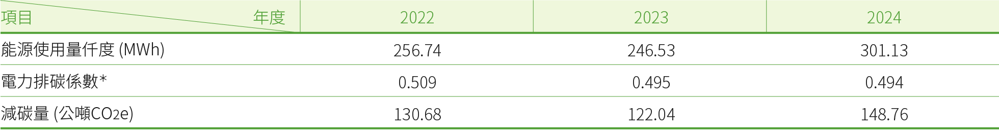 *:「電力排碳係數」係根據經濟部能源局各年度公告標準。