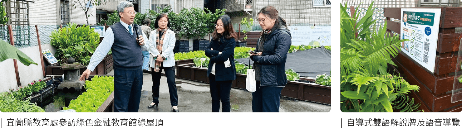 ・綠色金融教育館優化:為金融業唯一獲環境教育設施場所認證,2024年4月應環境部邀請分享第一銀行評鑑優異之經驗,12月完成環境部環境教育設施場所認證展延,並完成設置綠屋頂之自導式雙語解說牌及語音導覽。