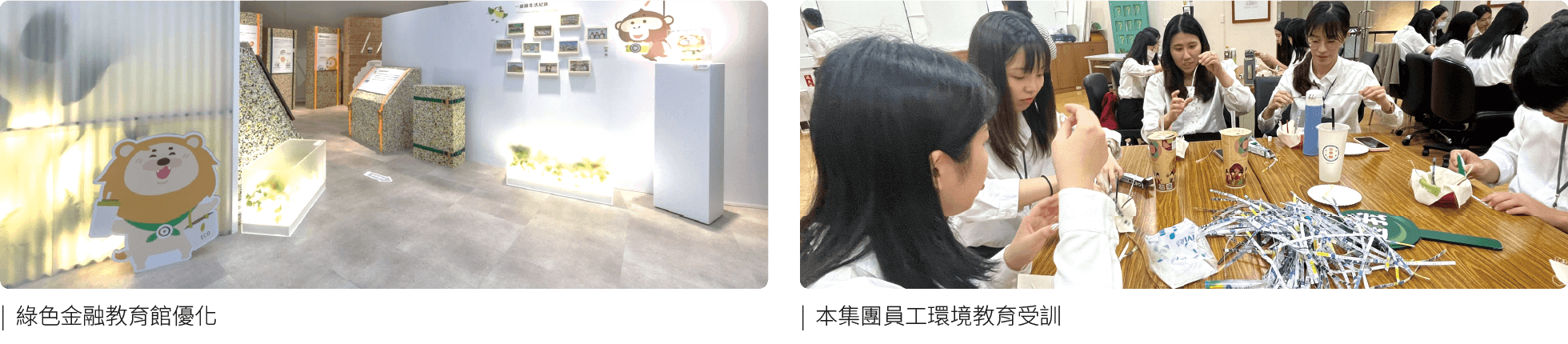 ・為強化集團員工對環境教育之知能,自2015年起集團員工須參加環境教育訓練,平均每人每年受訓2小時以上;現集團有6位環境部認證之環境教育人員與1位淨零綠生活講師,負責環境教育課程之編撰及執行,截至2024年底共推出「綠建築節能減碳」、「氣候變遷風險管理」、「綠色貸款與融資審查」、「綠色消費金融」四套經環境部認證之綠色金融環境教育課程。