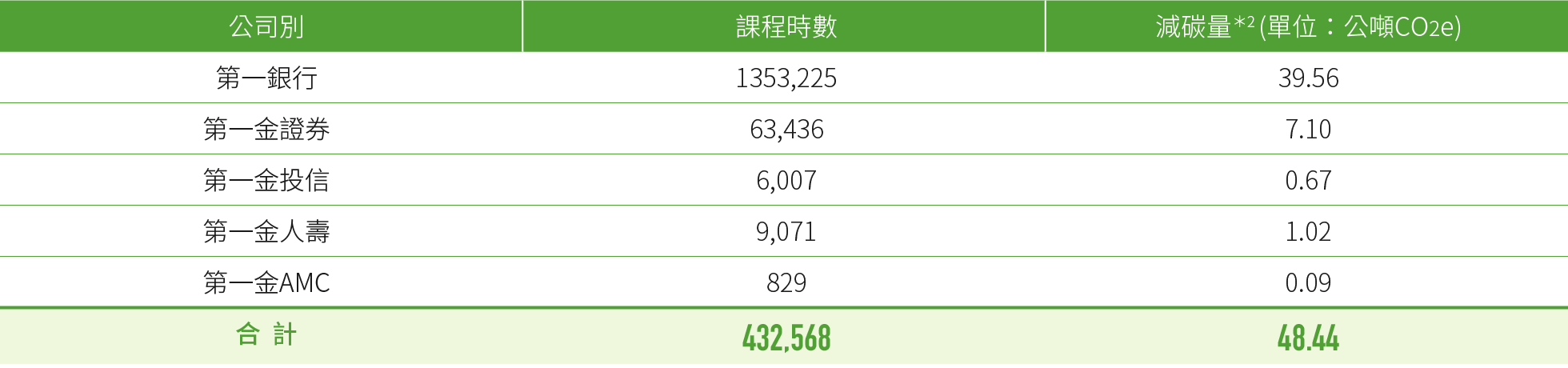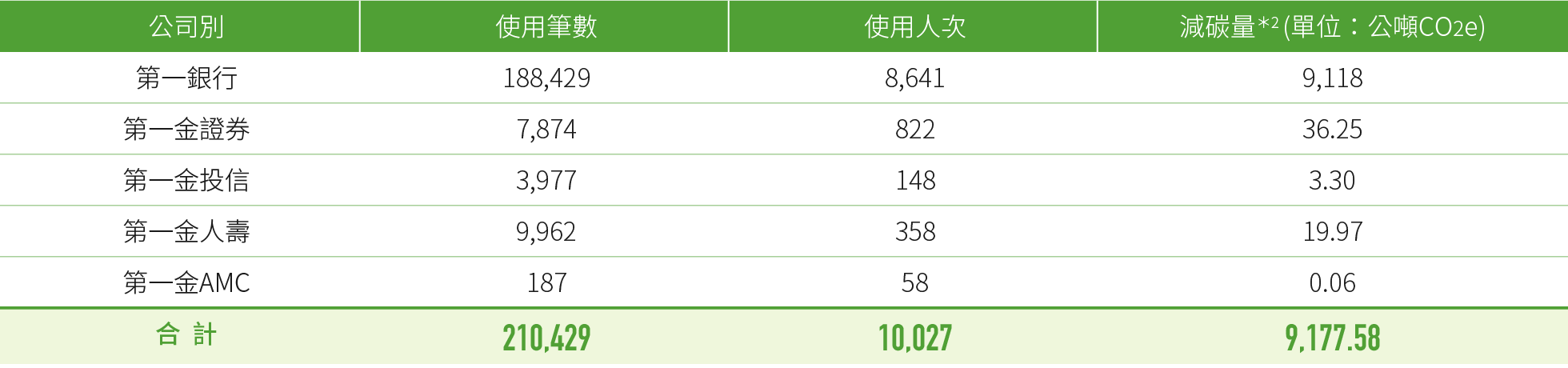 *2:2021年涵蓋範圍為第一銀行國內全數營運據點及證券、投信、人壽、AMC之總公司,2022年新增證券、投信、人壽、AMC之國內分支機構,2023年新增第一銀行海外營運據點,2025年則排除一銀海外營運據點。